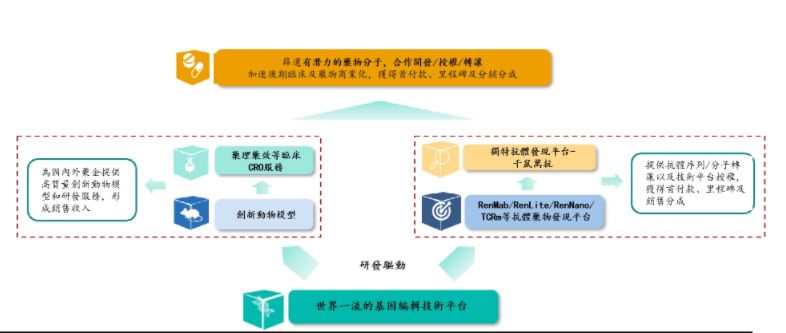 沈月雷:百奧賽圖的業務可以概括分為兩部分,第一大部分是臨床前研究產品與服務,其中服務主要是指藥理藥效評估,我們利用自主開發的基因編輯小鼠模型為客戶提供藥物評估結果, 客戶用評估結果再去做臨床申報,另外藥企可以採購百奧賽圖的技術和產品做實驗,也可以購買百奧賽圖開發的創新模式動物產品進行評估; 第二大部分則是基於公司自有轉基因小鼠RenMice系列平臺產出抗體的轉讓開發及合作開發業務,目前以臨床前轉讓為主,抗體按照分段收費模式進行轉讓,首付之後還會有里程碑付款和未來收入分成的收益。