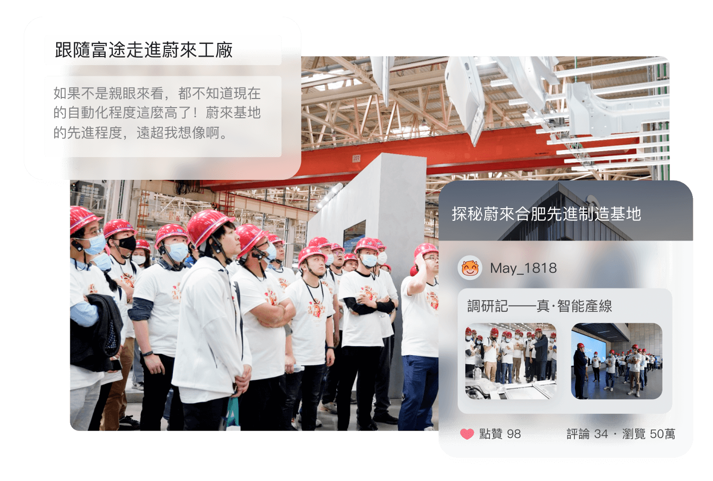 30名牛友、財經媒體走進蔚來合肥先進製造基地參與研究;探訪生產車間,與安徽區域總經理面對面交流。將線上的投資者交流延伸至線下與企業高層直面溝通。